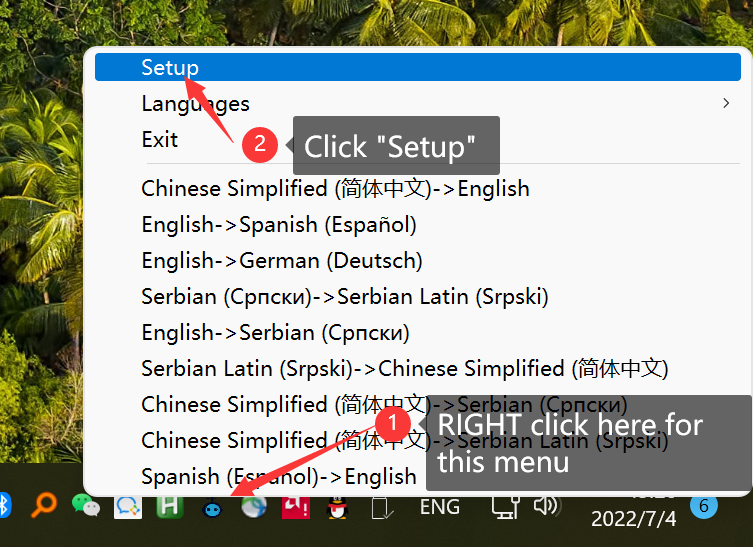 Left-click the GT4T icon in the bottom right corner of the screen to bring up GT4T Quick Menu, click the second item on the menu