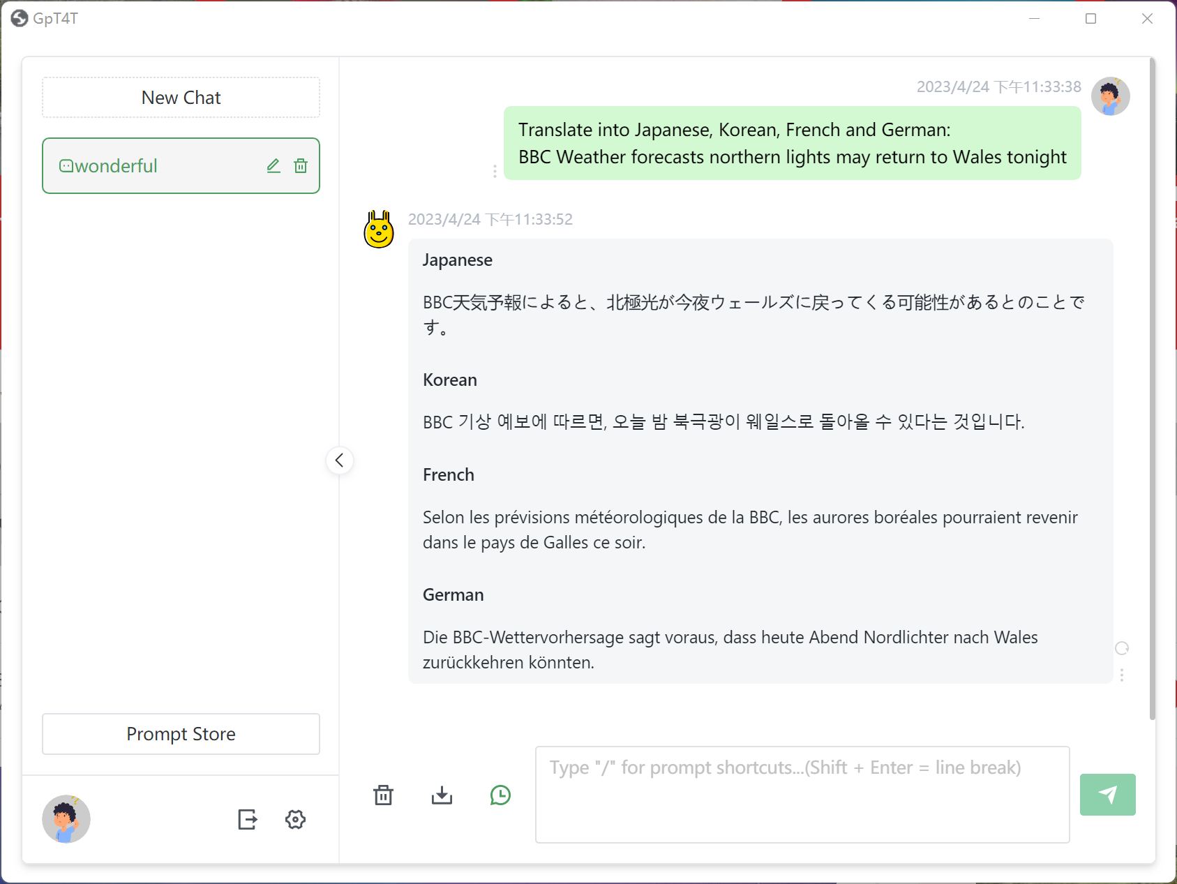 In the screenshot, I typed “Translate into Simplified Chinese”. Clicking “OK”, the selection was then translated into Simplified Chinese.